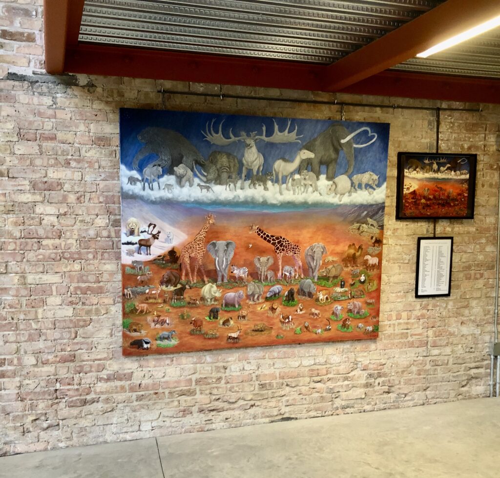 Hey everyone, this is such an exciting time for me to be included in this year’s ArtPrize! Scroll to the end to see how to sign up and “favorite” me. There’s a lot of information here including: my painting installed at the venue, a numbered picture of the animals in my painting with corresponding species names and endangered status, a fact sheet on endangered species and my bio. Thanks for stopping by!!